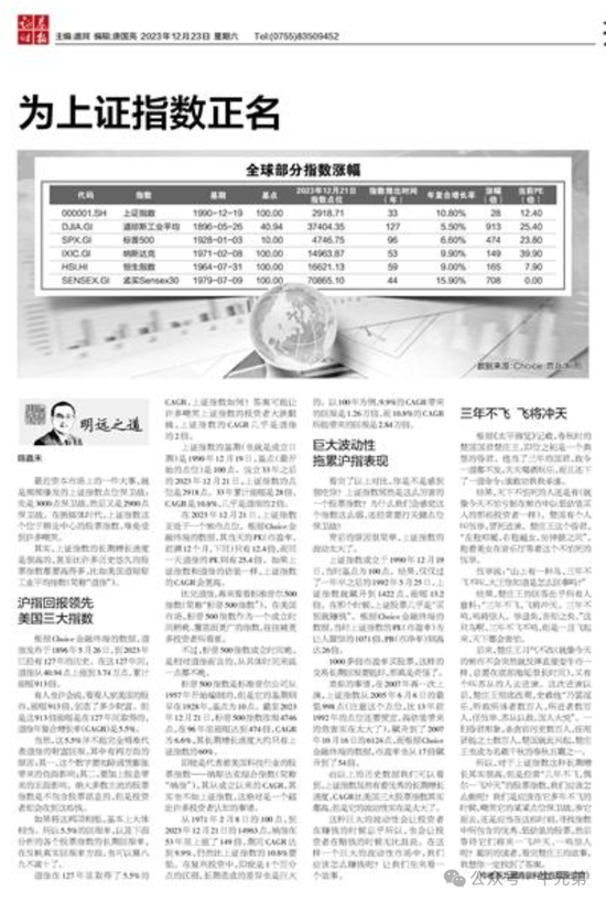 4、上证指数从1990年12月19日的100基点,到2023年12月21日的2918点,33年累计涨幅28倍,CAGR为10.8%。