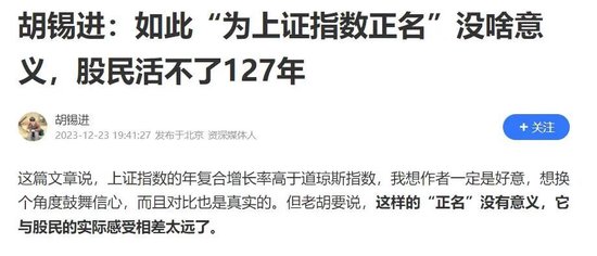 早在2023年下半年股市发生混乱,在易会满位子风雨飘摇时,《证券时报》于12月23日发表过臭名昭著的《为上证指数正名》一文(作者为九圜青泉科技首席投资官陈嘉禾),成为业界超级笑话。